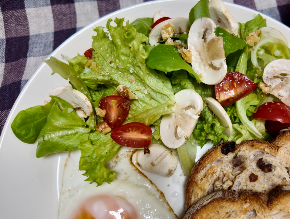 ちぎったリーフレタスをパンと一緒にプレートに盛ってみました。
